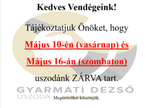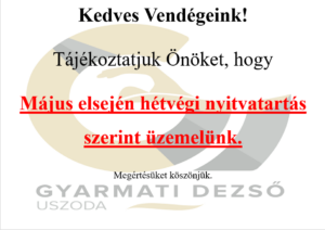 Hétköznap: 8:00 – 14:30, Hétvégén 8:00 – 19:30