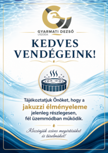 A wellness részleg hétvégenként a 33 méteres medence bezárásától függetlenül zavartalanul üzemel.